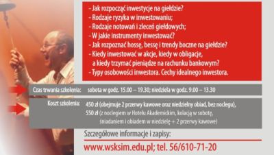 Wyższa Szkoła Kultury Społecznej i Medialnej w Toruniu zaprasza na dwutygodniowe szkolenia specjalistyczne z zakresu mechanizmów giełdowych i sposobów inwestowania.