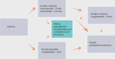 Dzięki kształceniu modułowemu studenci mogą:- studiować na wymarzonym kierunku