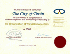 Toruń został wyróżniony przez Organizację Miast Światowego Dziedzictwa (OWHC) dyplomem za przestrzeganie zasad i charakteru OWHC oraz utrzymywanie "dobrej opinii za 2008 r.".