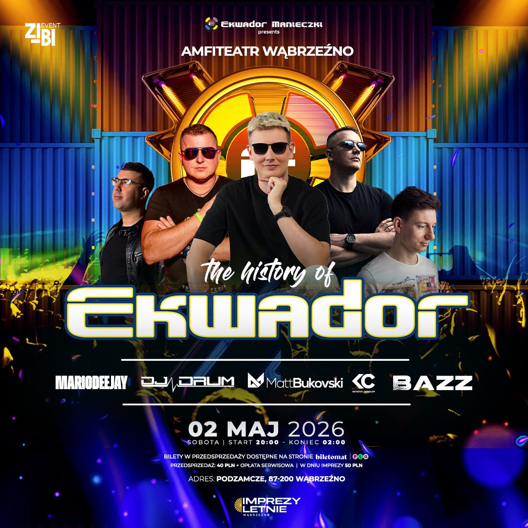 Szykujcie się na noc, która przeniesie Was w czasie do złotej ery największych klubowych imprez. The History of Ekwador to wydarzenie, które przywoła klimat legendarnego Ekwadoru – potężne brzmienie, epicka energia i atmosfera, jakiej nie da się podrobić 🔥Tej nocy Amfiteatr w Wąbrzeźnie zamieni się w prawdziwą świątynię muzyki elektronicznej. Światła, bas i sety, które zabiorą Was w podróż przez historię jednej z najbardziej kultowych marek klubowych w Polsce 💥Na scenie wystąpią:▪ Dj Drum