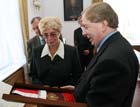 W małej sali Collegium Maximum odbyła się skromna uroczystość przekazania honorów dla wybitnego astronoma prof. Bohdana Paczyńskiego, któremu Senat Uczelni nadał tytuł Doktora Honoris Causa Uniwersytetu Mikołaja Kopernika. Na prośbę i w imieniu Profesora, zaszczyty z rąk rektora UMK prof. Andrzeja Jamiołkowskiego oraz prof. Andrzeja Woszczyka z Centrum Astronomii UMK przyjęła jego siostra - Ewa Fuksiewicz.